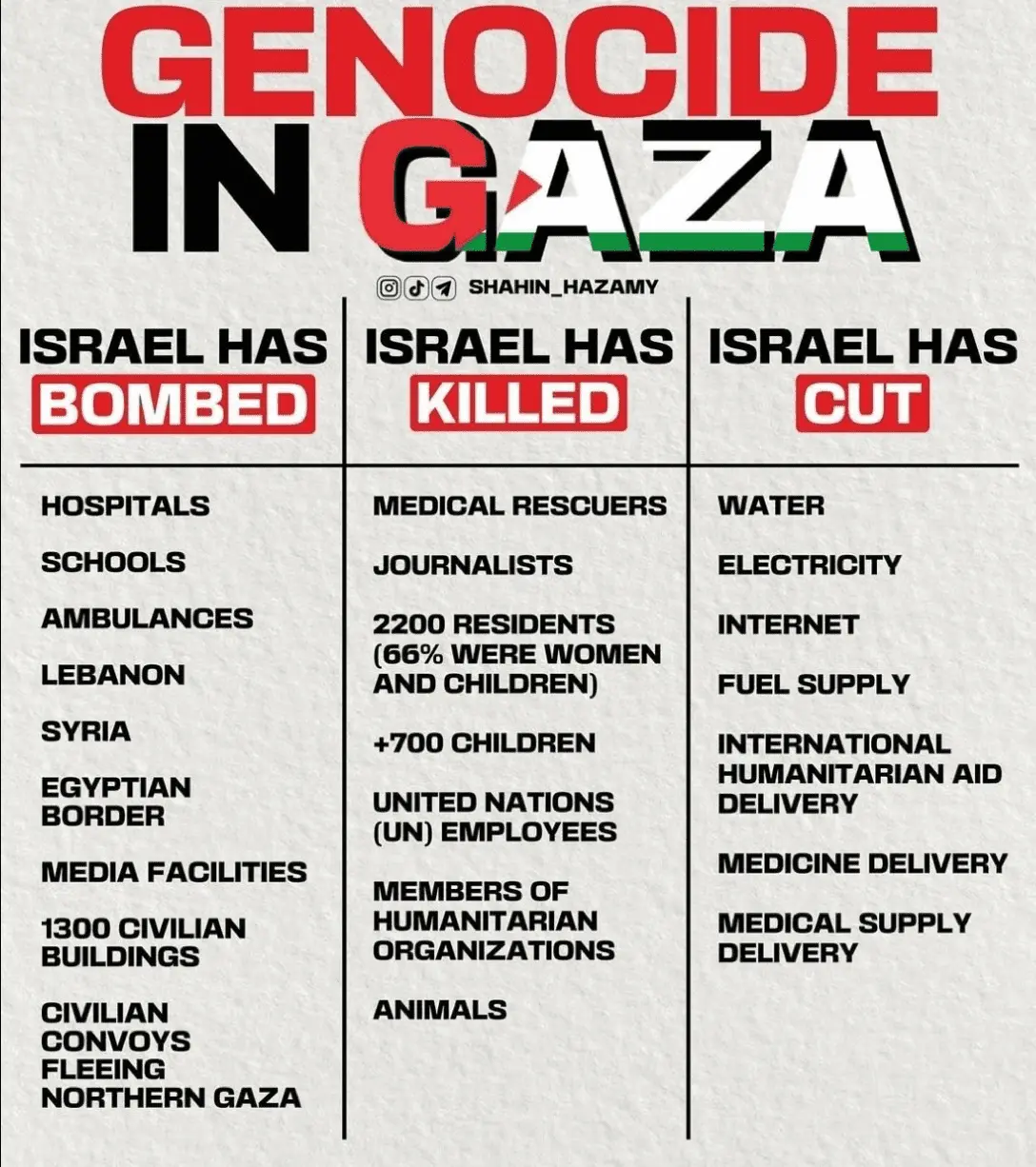 Dupe Alert!Did you know Israel is the first country in the history of the world that warns the people way in advance that they’re coming to genocide them. They’re also the first country to help relocate, feed and water their targets of genocide. Kind of strange for genocide don’t you think?