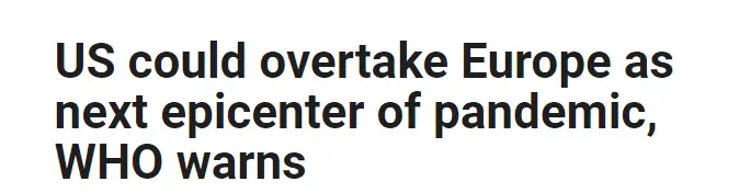 US could overtake Europe as next epicenter of pandemic, WHO warns
