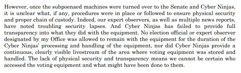There were no forensic audits, and the recounts only recounted the same questionable ballots as though they were valid.