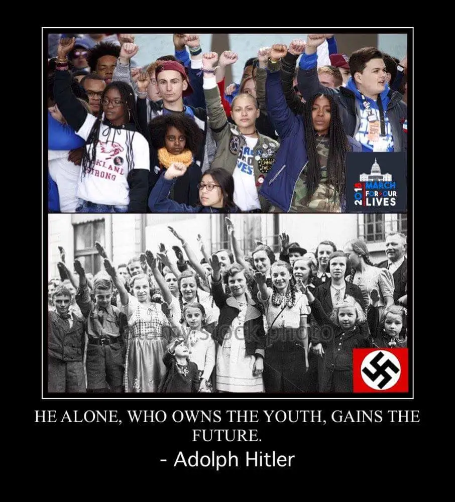 Hogg's mannerisms are nothing like your Fuhrer's.Try watching the video of the youngster speaking to the crowd. I could care less about the salute, it is the mannerisms while he is talking that I am referring to.Comparing him to hitler is wrong, but he was certainly channeling the mannerisms of the dictators of old.![]()