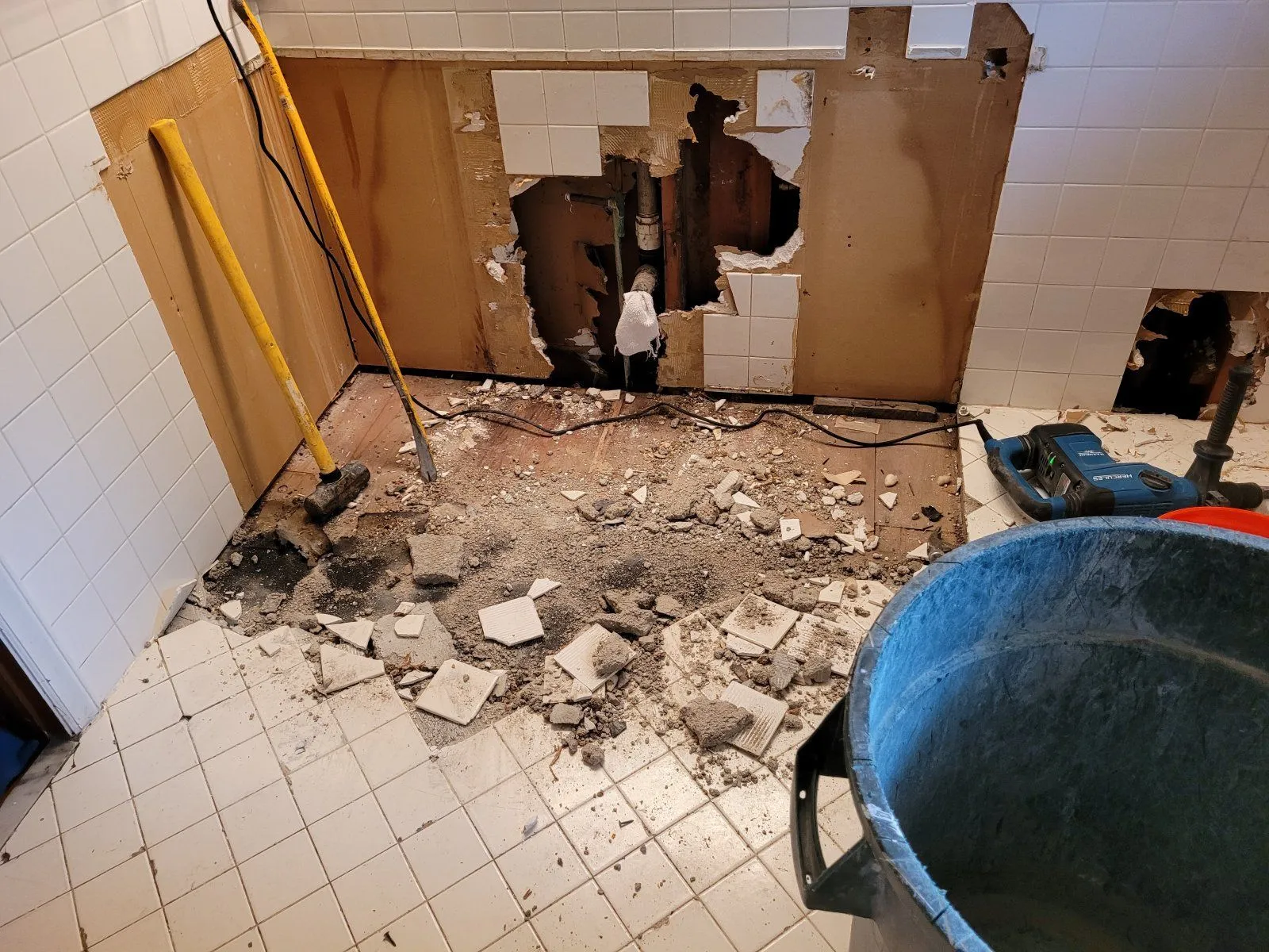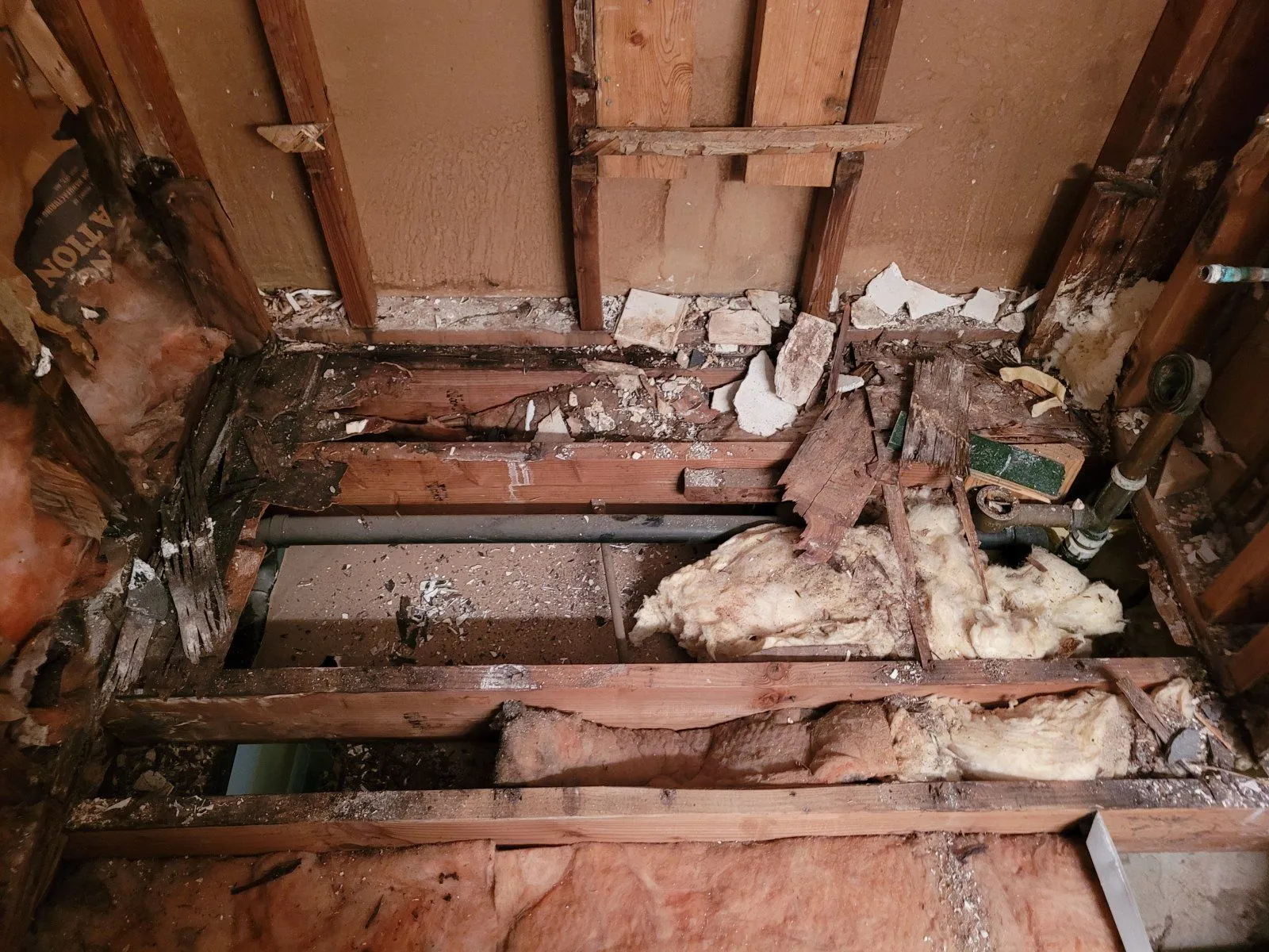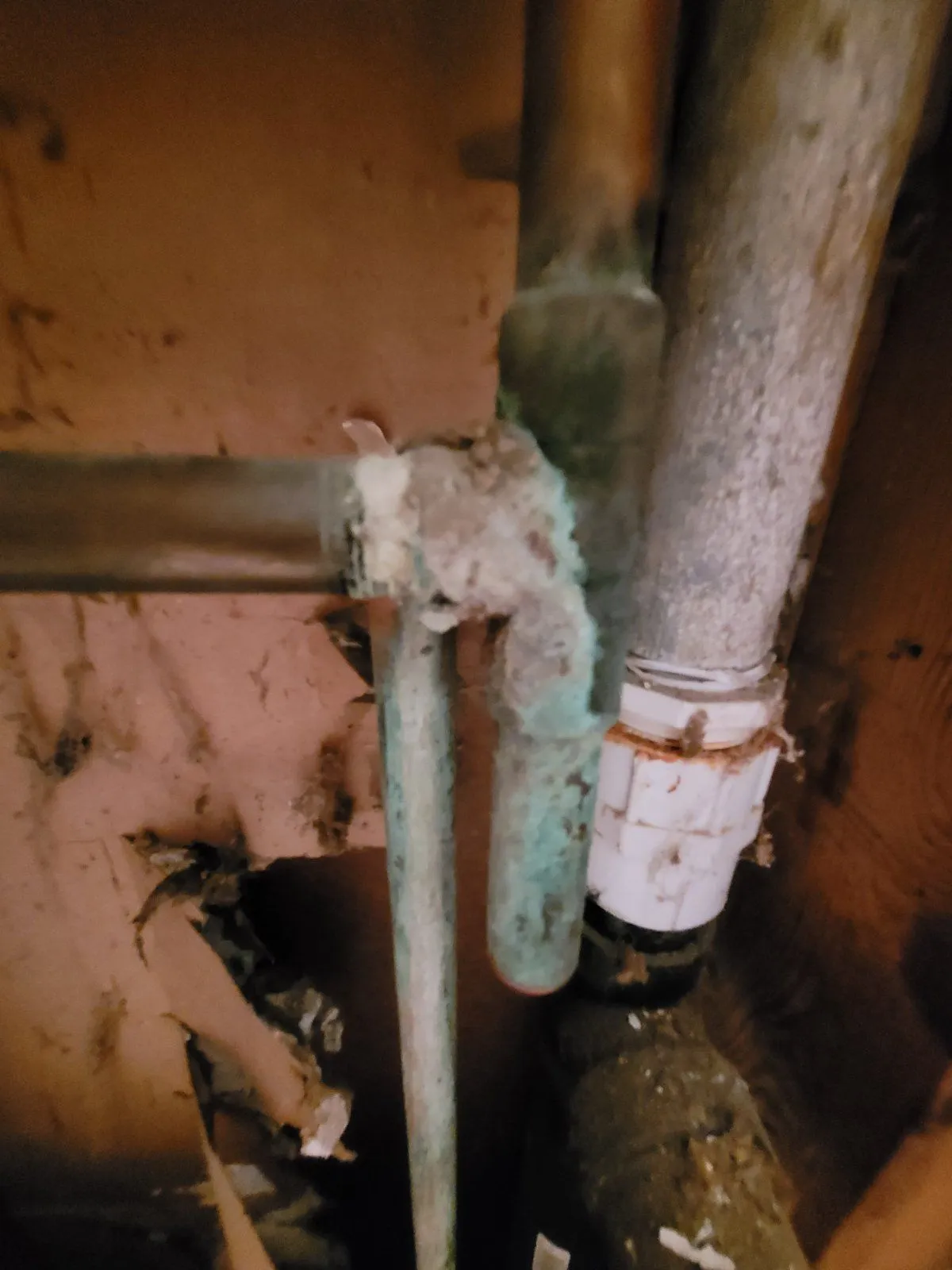First leak behind the vanity found. This leak they didn't know about. The pipes behind the tub are the ones that destroyed their floor, joists and garage ceiling. I'm just literally thanking God this shit isn't cast iron or galvanized pipe lol