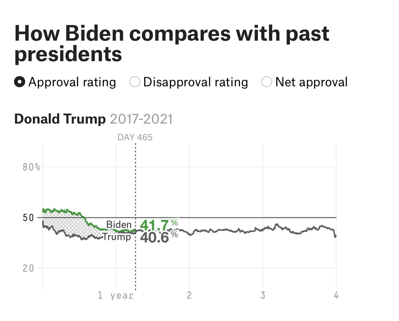 Well, incase you are unable to compare polling numbers I thought I’d point out that 100 days into Biden’s second year there hasn’t been a day that he has had a worse polling number than Trump.