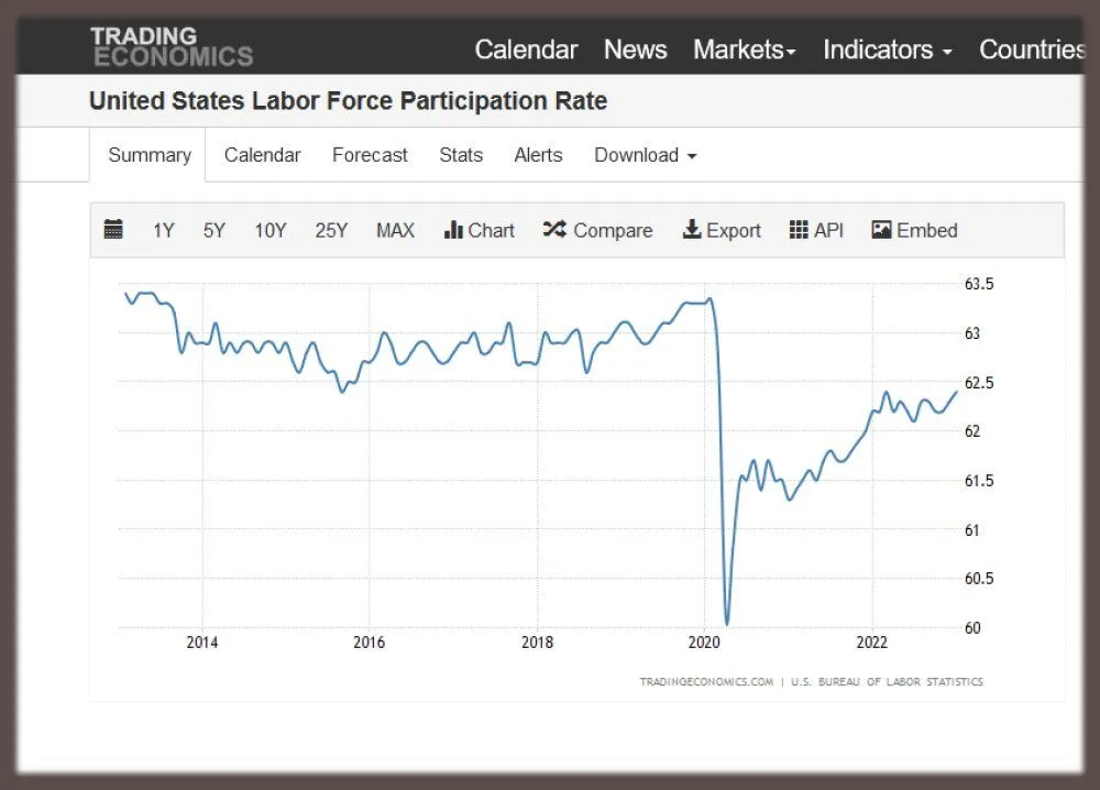 The labor participation rate hasn't reached the pre-pandemic Trump era.