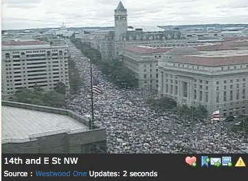 Indeed I was there. I also know that you keep quoting the DC FD as some official number of the protest. IF it were an official number, it is only one for Pennsylvania Avenue. The protest took place at several different locations in the District.Ummm. So, Bobby, tell us. Have you ever been to the District? I ask because for some reason you seem to think that a protest covering the Mall, the Memorial Mall, Laf. Sq, the Hill, E St, is equivalent to Pennsylvania Avenue.