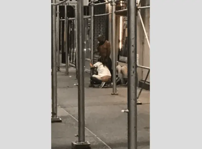 A community safety group shared a snap of a woman apparently giving a man oral sex on a Manhattan street to highlight social issues gripping the area (Picture: Save the UWS/Twitter) A woman was photographed urinating while simultaneously giving a homeless man oral sex on a street in a glitzy Manhattan neighborhood. The grim snap was taken on the Upper West Side on Sunday, amid claims the once upmarket area has become a crime hotspot since 13,000 homeless people were moved in during the coronavirus pandemic.