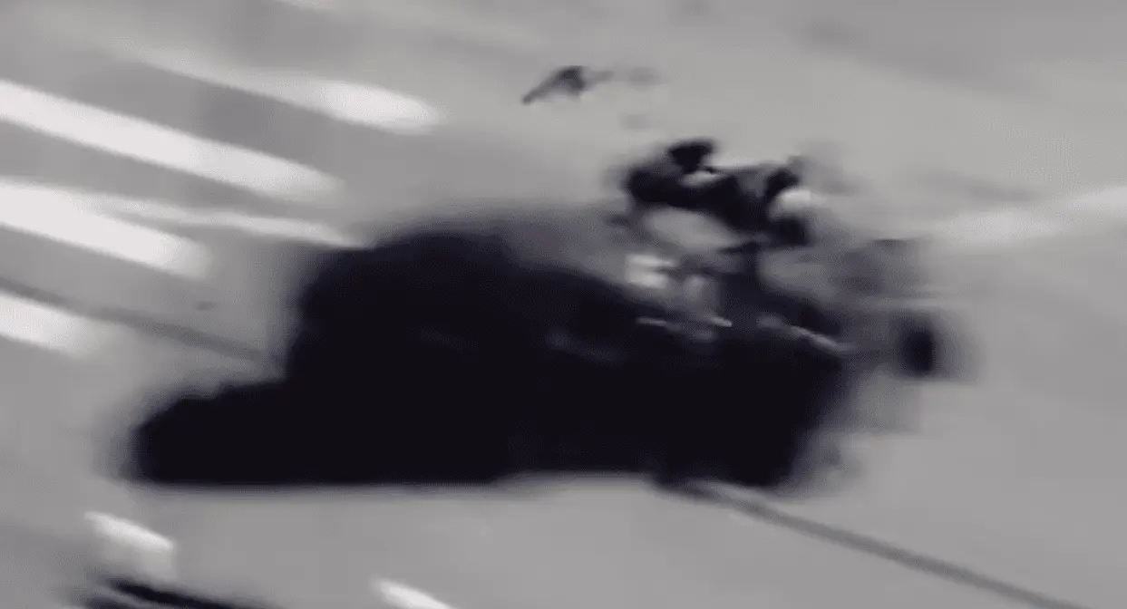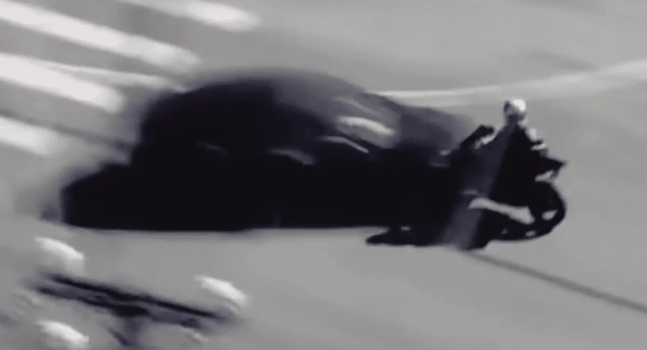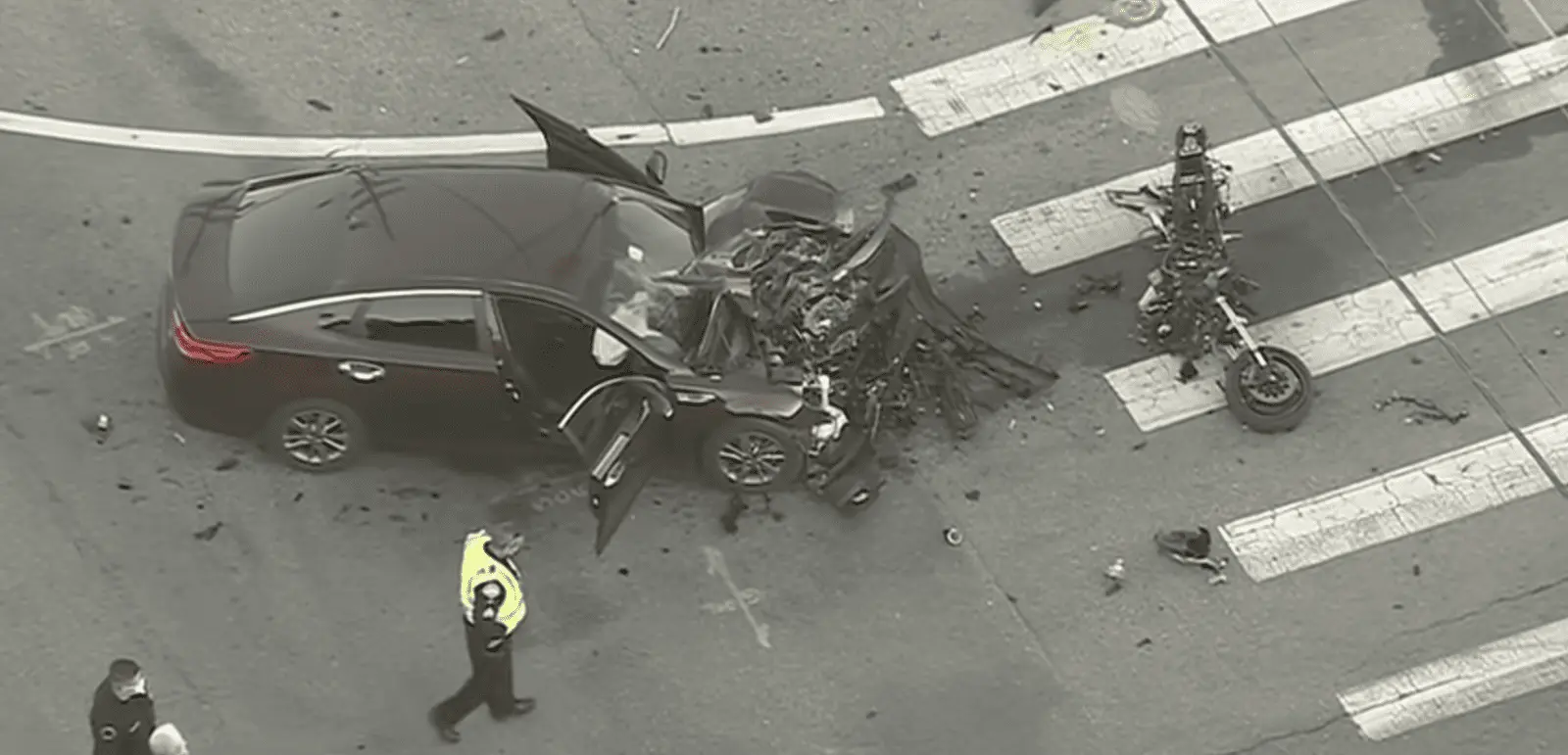 You wonder if this was the 1950's if the car would not have had much damage on it and the motorcyclist would have been peeled off it.