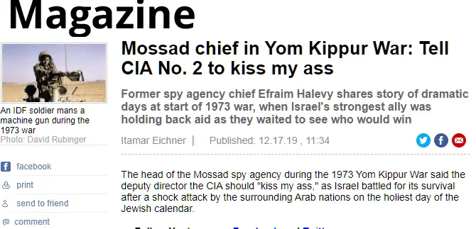 This is a head of mossad Efraim Levy in the 73' war talking about the head of CIA that told him that the US will not help Israel until it gets back on its feet.