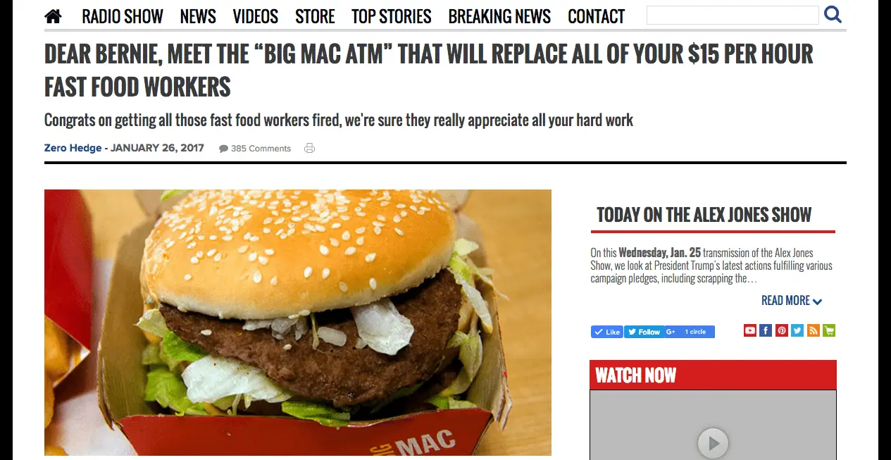 Dear Bernie, Meet the “Big Mac ATM” That Will Replace All Of Your $15 Per Hour Fast Food Workers