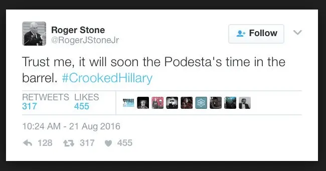 As Roger Stone, top Trump advisor, has admitted to doing.