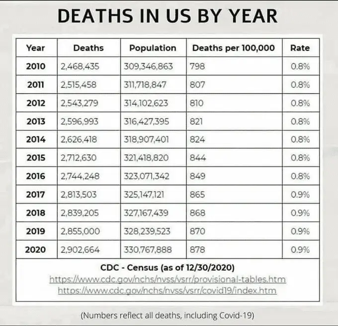 .....or the numbers claimed for the Wuhan Red Death are simply the usual causes moved to the Covid column.