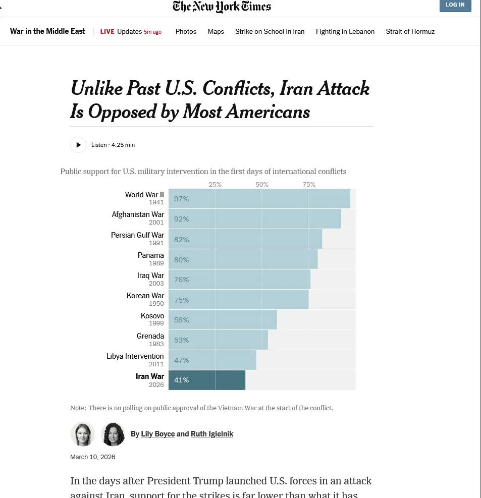 Reflects more the decline in intelligence, ethics, morals of Americans than if the response to Iran's attacks the past few decades is Just or Right in objective perspective.I'm against using US taxpayer money for something that will bring them no benefit.