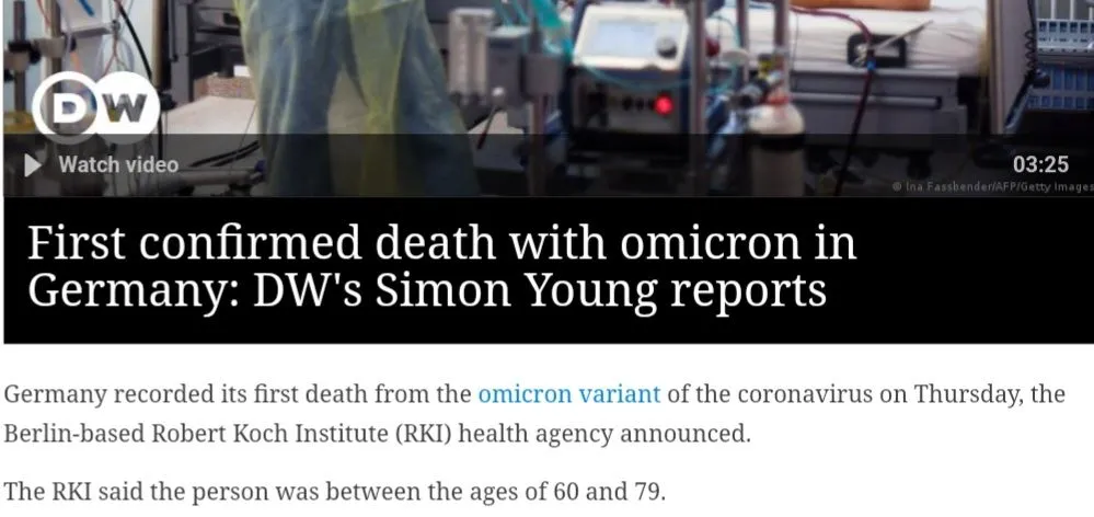 “Germany recorded its first death from the omicron variant of the coronavirus on Thursday, the Berlin-based Robert Koch Institute (RKI) health agency announced.