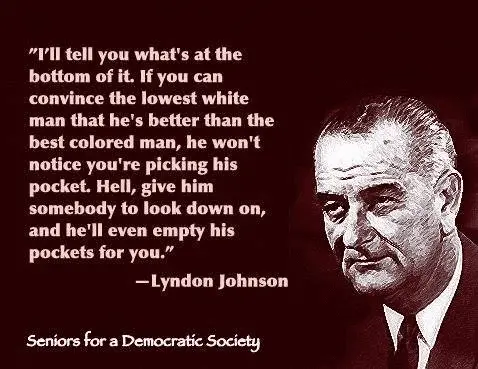"You're on OUR team. Donchu no ?" even though they had more in common with poor black slaves. But they put those poor whites on slave patrols. Gave them a little taste of power, a little boost to their self esteem. Still works today. You have poor whites thinking they're gonna be Jeff Bezos or Elon Musk.