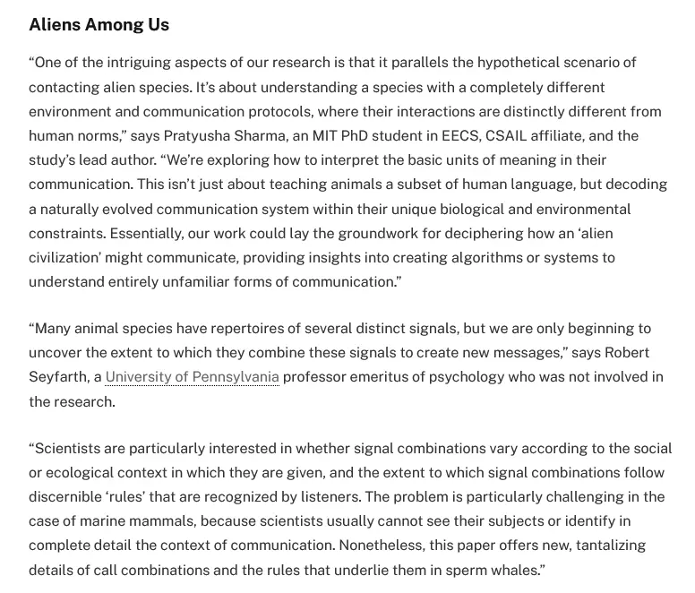 The biggest problem with this video are the images IMO. Project CETI was focused on sperm whales, but the vast majority of images in this video were of blues and/or humpbacks.