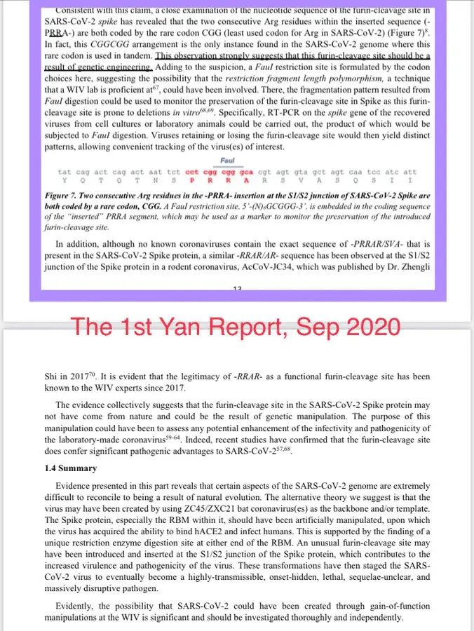 Technical details provided by the defector, RedState is told, were given to scientists (who were not told how that information was given to the government) who then re-analyzed data from published sources in conjunction with the new data and concluded that the SARS-CoV-2 virus was engineered. And, the defector was able to confirm numerous non-public details Yan provided the US government.