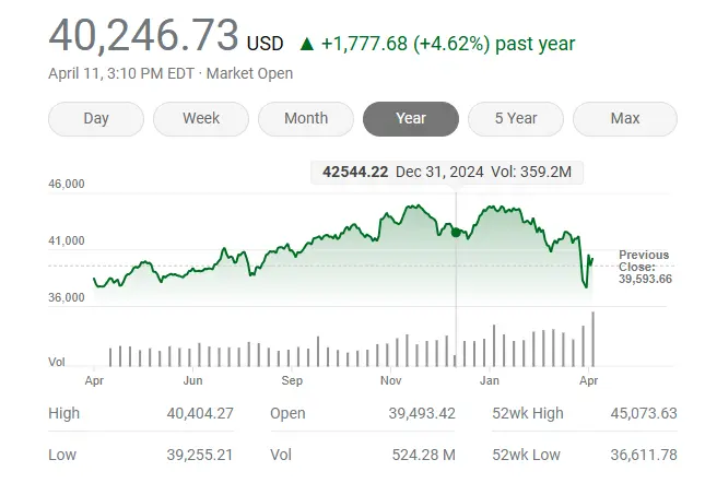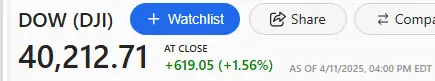 DJIA today @ 1:45 p.m. 40,366.