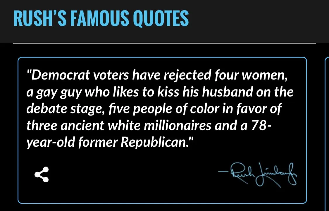 Once you get past that you might essplain how these would necessarily be "Democrat voters" anyway. I'm not a Democrat voter and I can, and will, vote in that party's primary today, if I decide to do that rather than the Republican primary --- where I'm not a Republican voter either. Does Lush Rimjob not understand how the process works? Or does he figure his audience swallows whole without thinking?