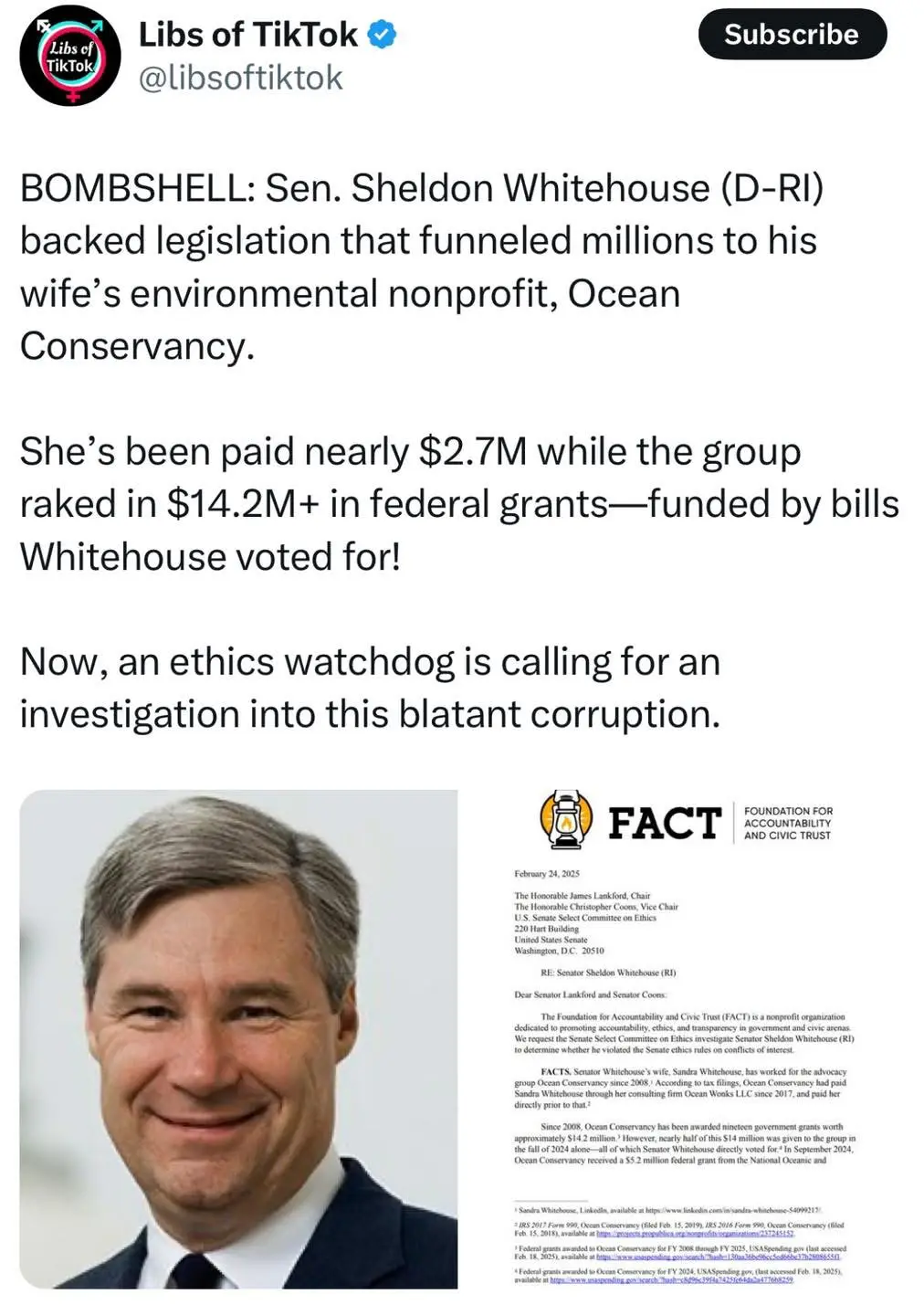 As soon as I saw the headline, I guessed it would be Sheldon Whitehouse.