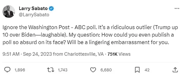 Nolte: Larry Sabato Says WaPo Wrong to Publish Trump +10 Poll