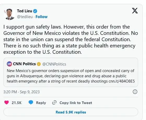 You can bet that, had Hillary been President, she would have suspended as many rights as she could get away with.“However, this order from the Governor of New Mexico violates the U.S. Constitution. No state in the union can suspend the federal Constitution. There is no such thing as a state public health emergency exception to the U.S. Constitution.”