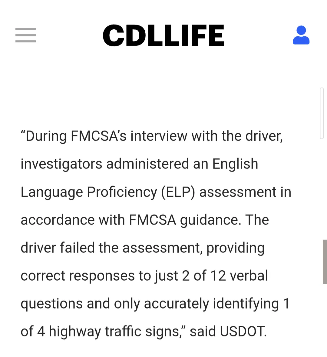 Officials with the US DOT, as part of the investigation into the collision in Florida administered the English Proficiency examination that should have been conducted during the New Mexico DOT inspection.