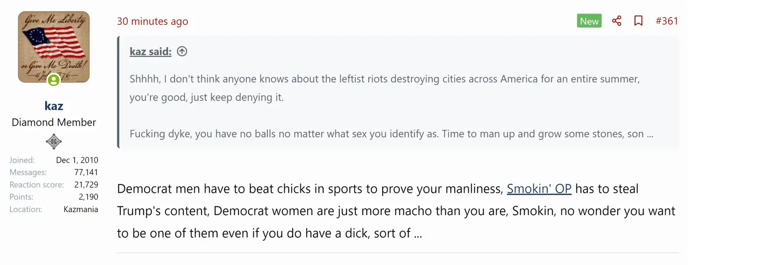 ******* dyke, you have no balls no matter what sex you identify as. Time to man up and grow some stones, son ...