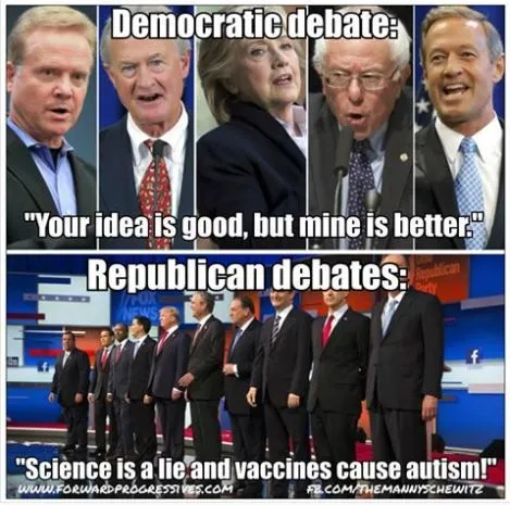 Republicans: We will restore America's glory.It was a great debate. The focus was on issues and not hair styles.