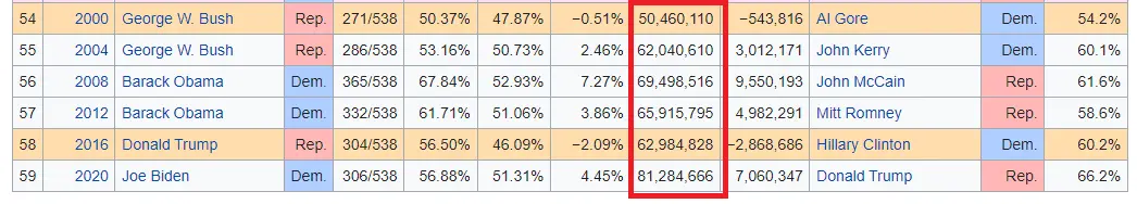 Considering that everyone came out for the Trump/Hillary election, how is this even possible? Look at those numbers? Wikipedia is no friend of Republicans so these are not conservative stats. Where did all of those extra votes come from?