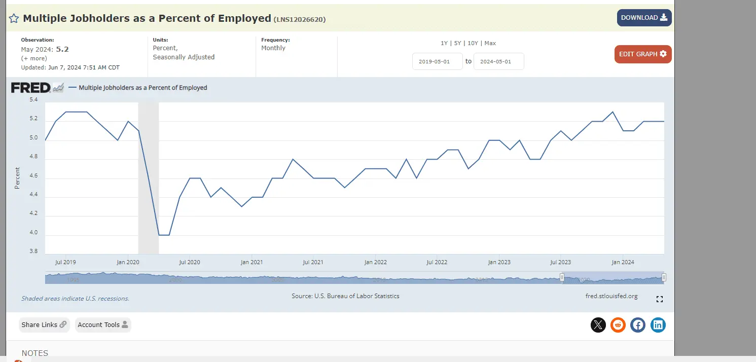 In May, 400,000 fewer Americans had jobs than in April. The so-called jobs ‘added’ by Biden are just Americans working second or third jobs.