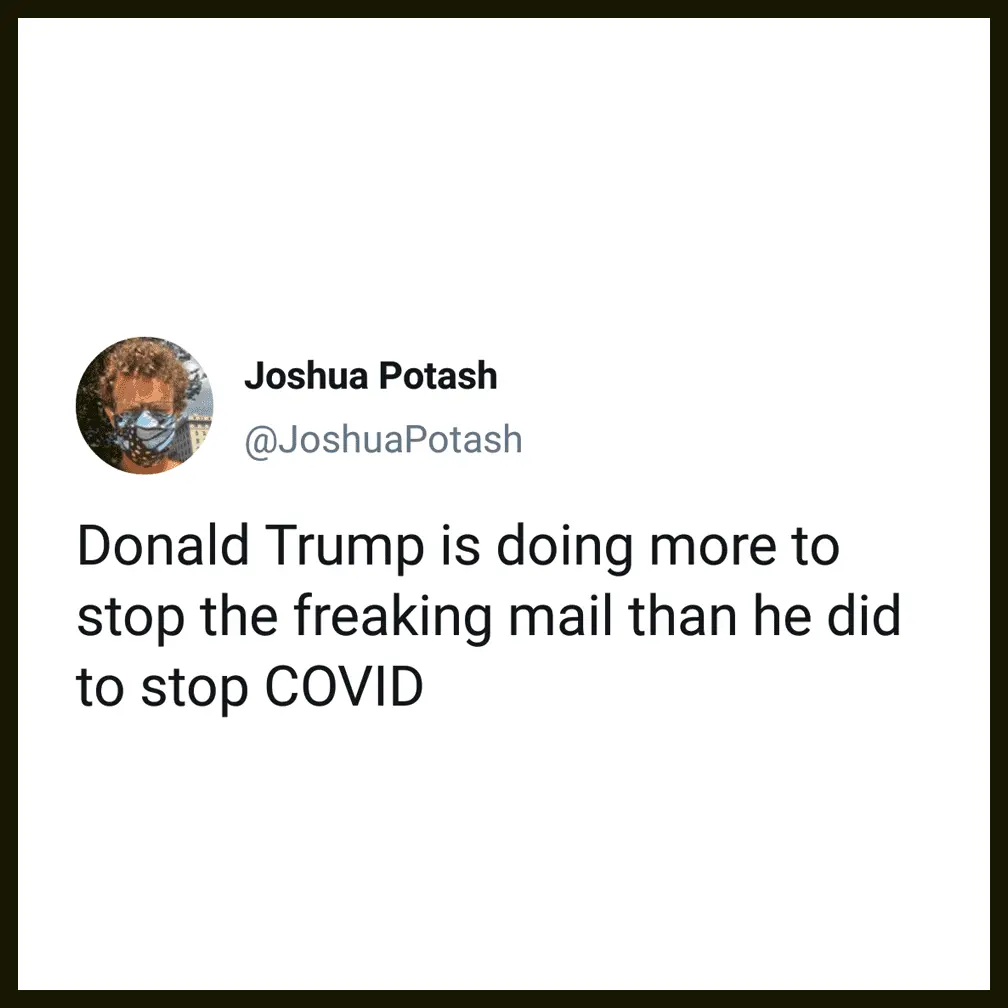 Couldn't be further from the truth. Dems did not create this problem, but Trump did in order to steal the election.Democrats actually think this is a winner. They're all screaming, while on vacation, that Trump is trying to change the post office to make it harder for them to steal elections.