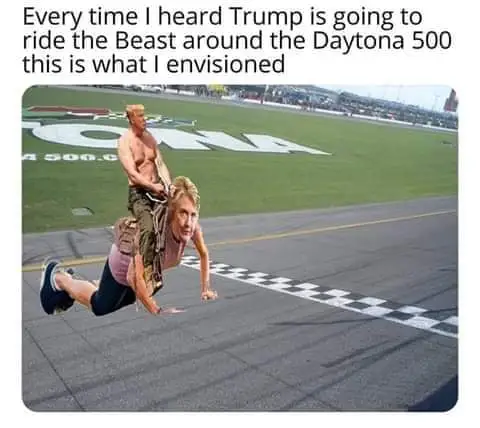 View attachment 307371To think they showed up to see Trump at the Daytona 500.LOLOLBeing cheered on by 50,000 Republicans isn't much of an accomplishment.