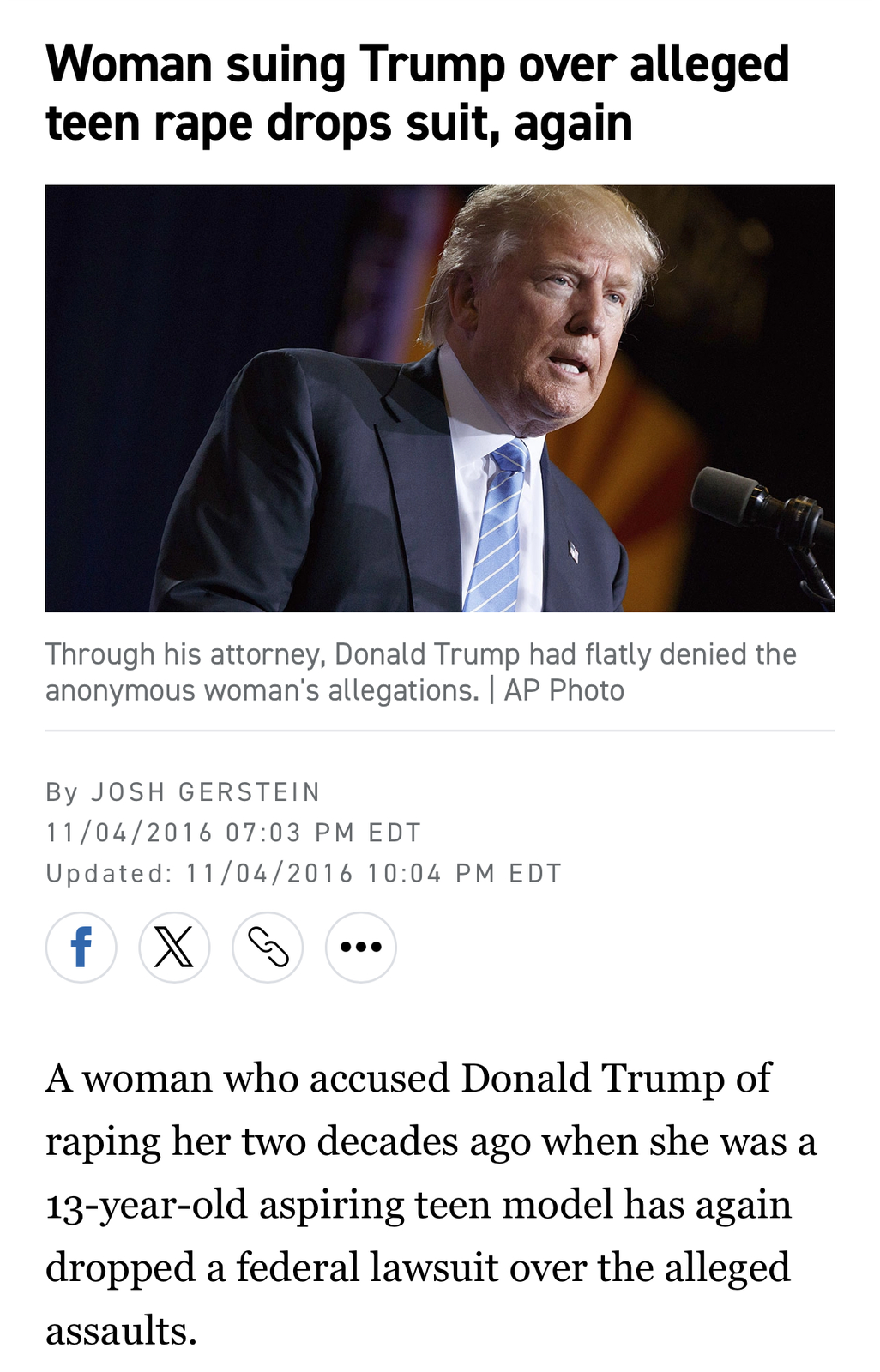 GFY, useful idiot.Duh..Katie Johnson sued both Trump and Epstein for rape, you imbecile.