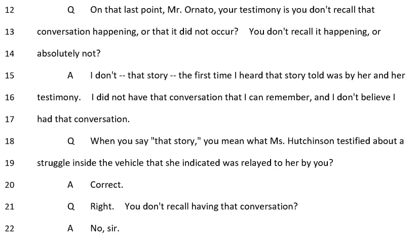 Nope. He said he didn't recall "that he conveyed the information to Cassidy Hutchinson regarding the SUV." If someone said "you did 'A.'" and you said "I don't recall doing 'A.'" that could only mean that you believe you didn't do 'A'." Any other interpretation of those words would be a lie.