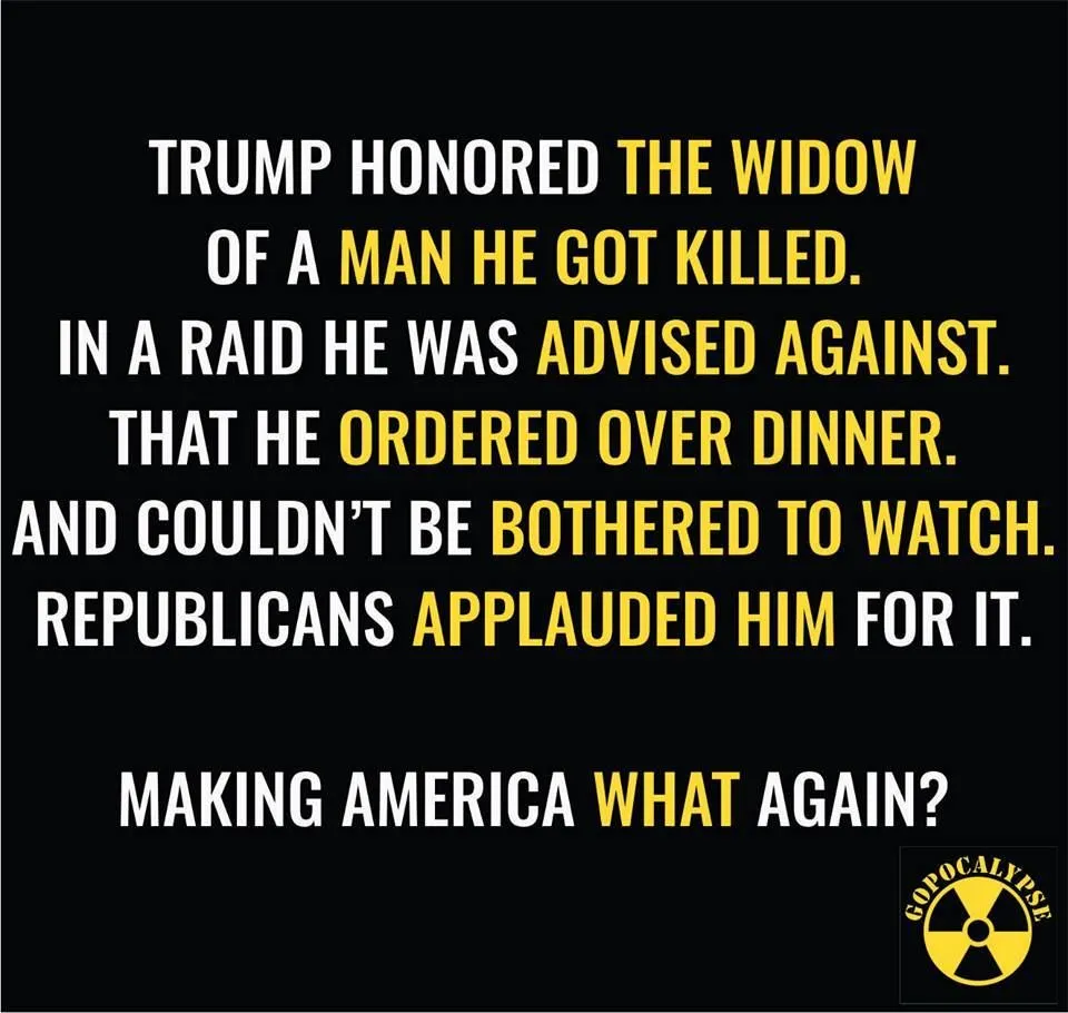 View attachment 115167Liar.It is pretty sad when the liberals try to make fun of the widow of a navy seal who was invited to Trump's speech in Congress. They said that Trump was using her for his own gains. Maybe, maybe not. But there was also a black girl, and a woman with a disability in the balcony who were also invited, and they were also praised and recognized by Trump. Was Trump using them also for his political gains?