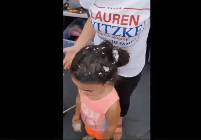 So, the mother puts the kid on display and publically embarrasses the kid and alleges someone targeted her child instead of cleaning her up and ending her embarrassment by using her as a prop for a self-serving video. Trumpoholic mom.