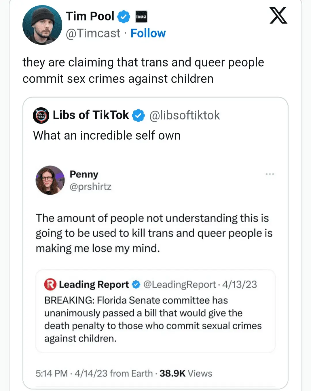 You respond to FACTS about your party's grooming and pedophile policies with false unproven allegations attacking a single person.