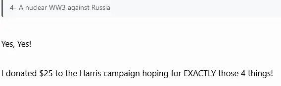 Are her donors welcoming WWIII? Seems those $1.2B donors want some return on their investment!
