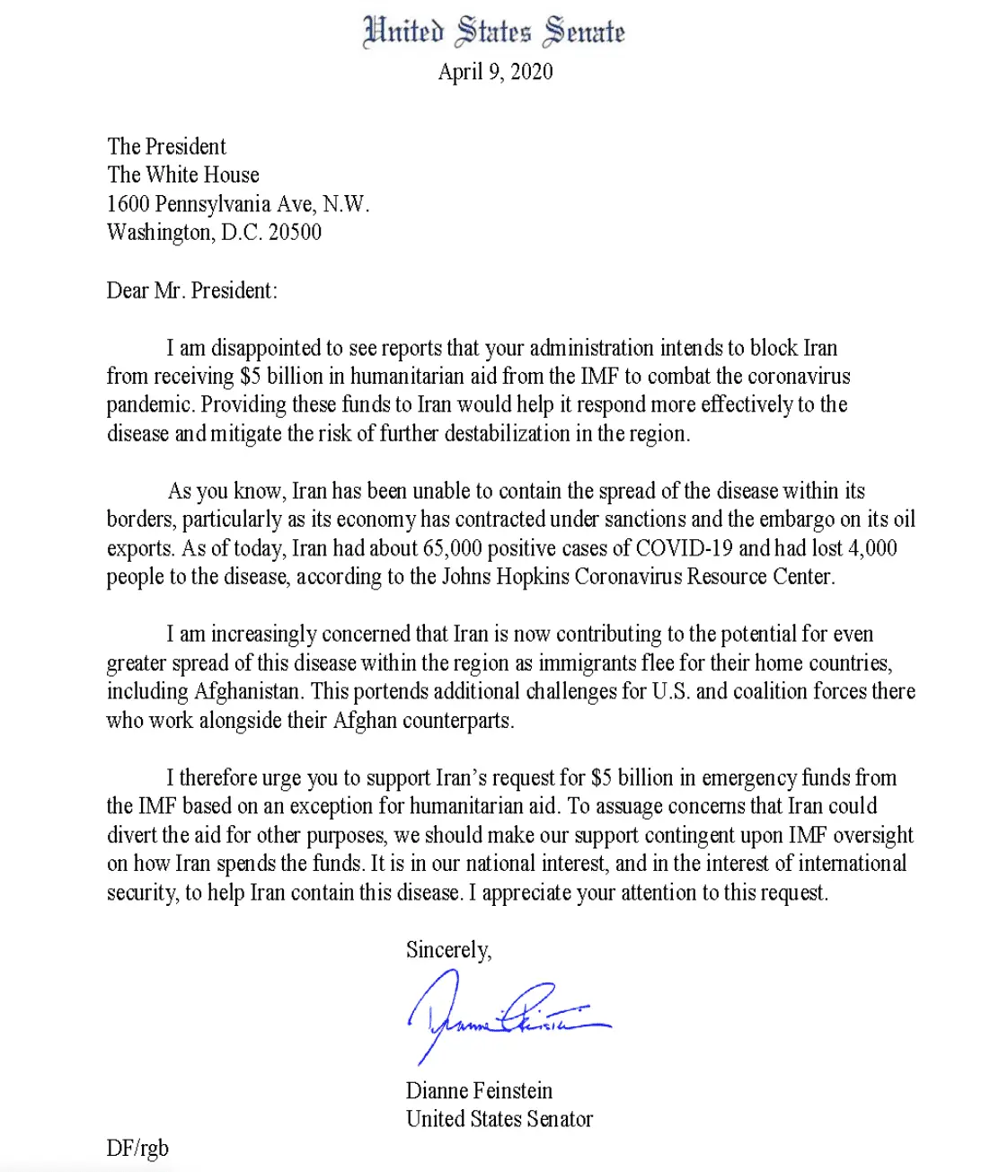 Leading Democrat Dianne Feinstein insists this is the time for America to dispatch taxpayer money to a deadly foe and official state sponsor of terrorism in a letter that she sent to President Trump and Secretary of State Mike Pompeo.