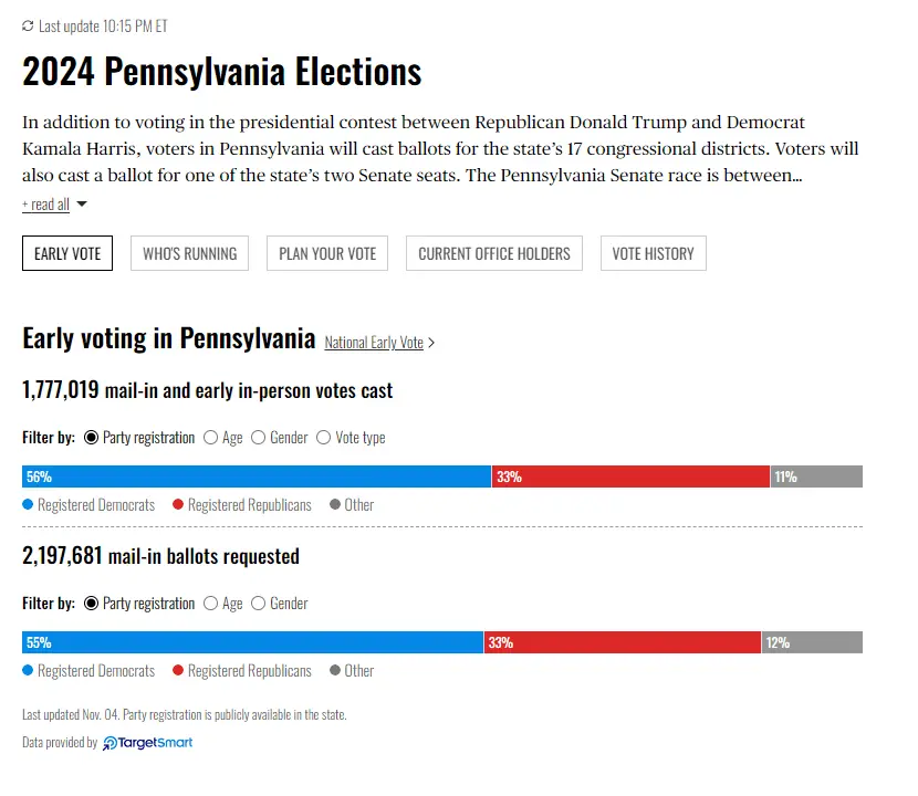 The total R vote- 586,416, is less than 2020, when it was 621,457. Repubs still have some votes in the bank for tomorrow.