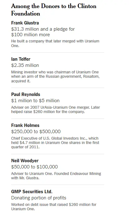 Did anyone connected to that Russia connected company give any money to the Clinton Foundation?