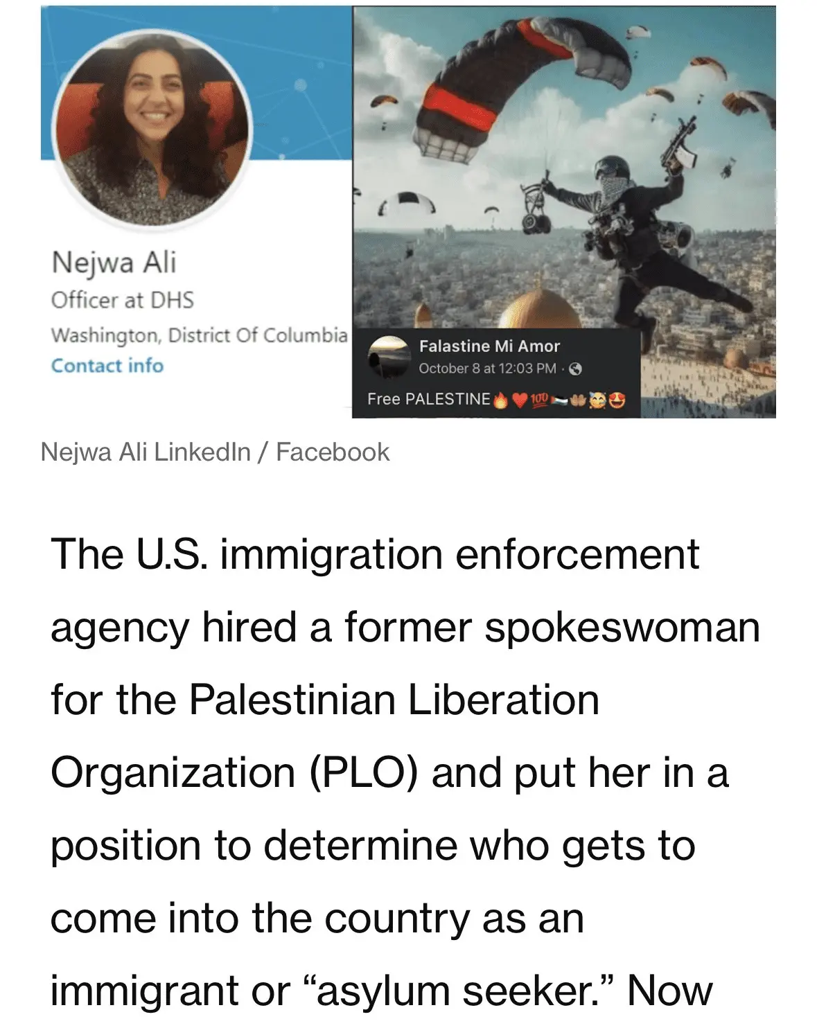 The Department of Homeland Security employee has made numerous social media posts defending Palestine against Israeli "apartheid."