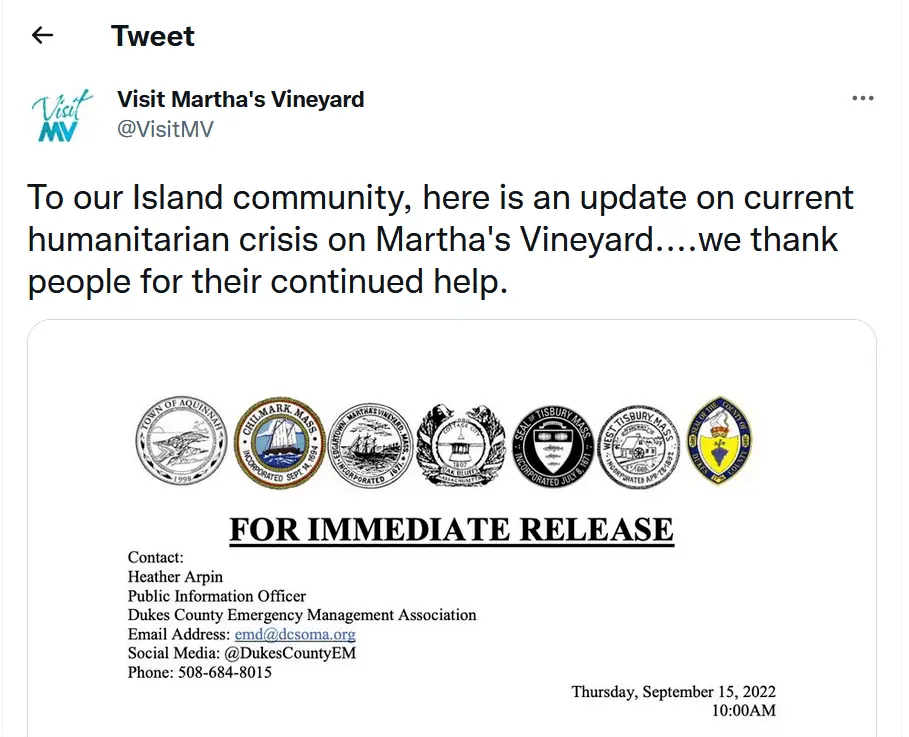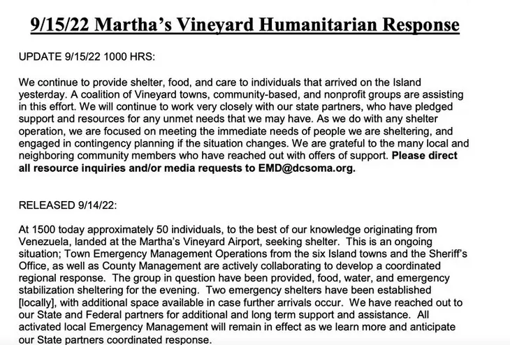Martha's Vineyard got sent 50 migrants, 1% of what Texas sees some days....