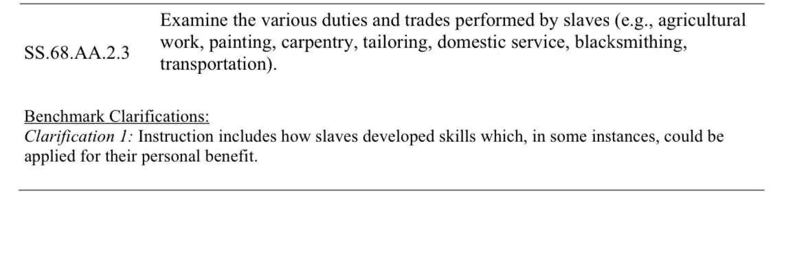 Officials from the Florida State Board of Education recently released a new history standard that has caused an uproar in the education community. The standard includes controversial language that claims, “slaves developed skills which, in some instances, could be applied for their personal benefit.”