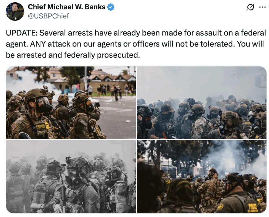 After a second consecutive day of rioting and attacks on federal agents conducting immigration enforcement actions, Border Patrol Chief Michael W. Banks announced that a massive federal response was underway.
