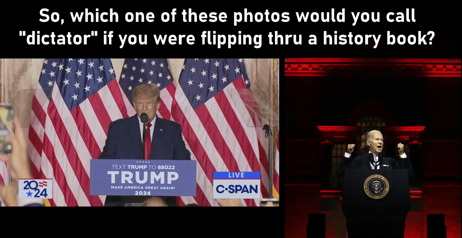 So, you believe Trump a dictator, but not Biden. That’s entirely illogical. If Don‘s a dictator than logic dictates so is Biden, who is prosecuting his leading political opponent based on total bs.I saw for four years. No repeat.![]()
