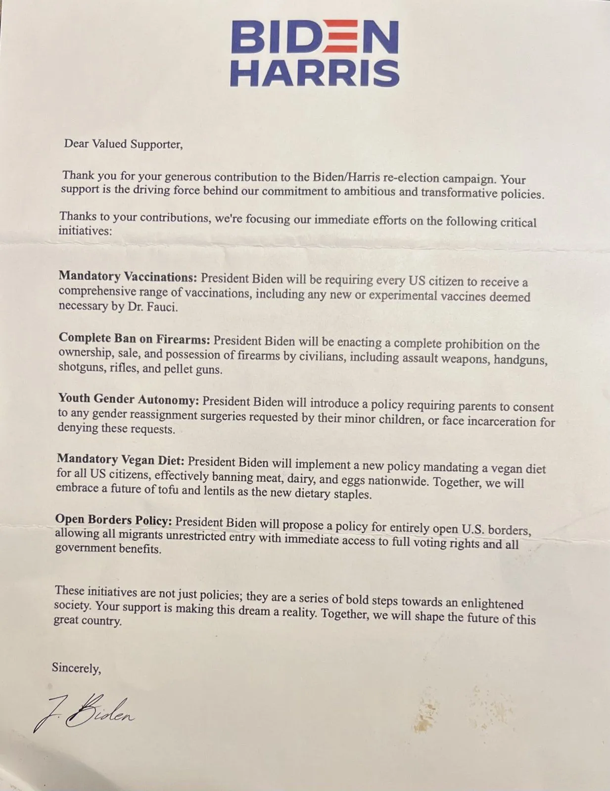 Was over my brothers house and spotted a very anomalous Biden Harris letter on the counter - my brother is not a fan.