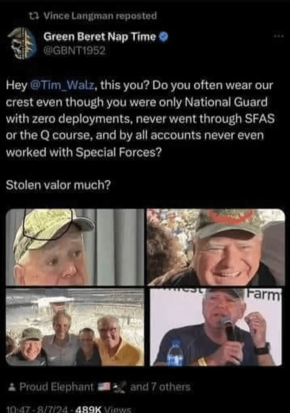 Not sure what "falling for this" means .. it's an effective strategy, as we saw in 2004, about politicians that embellish or misrepresent their service -- which Walz has done. It demonstrates his character. Another effective strategy is to focus on his policies and positions as Governor of Minnesota and how he handled chaos during the 2020 riots.Listen you simps, this thing AIN'Tt gonna work.