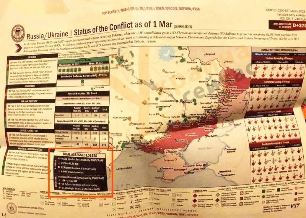 No, the Russians did not manipulate the documents, the documents show the actual US assessment of Russian and Ukrainian losses.