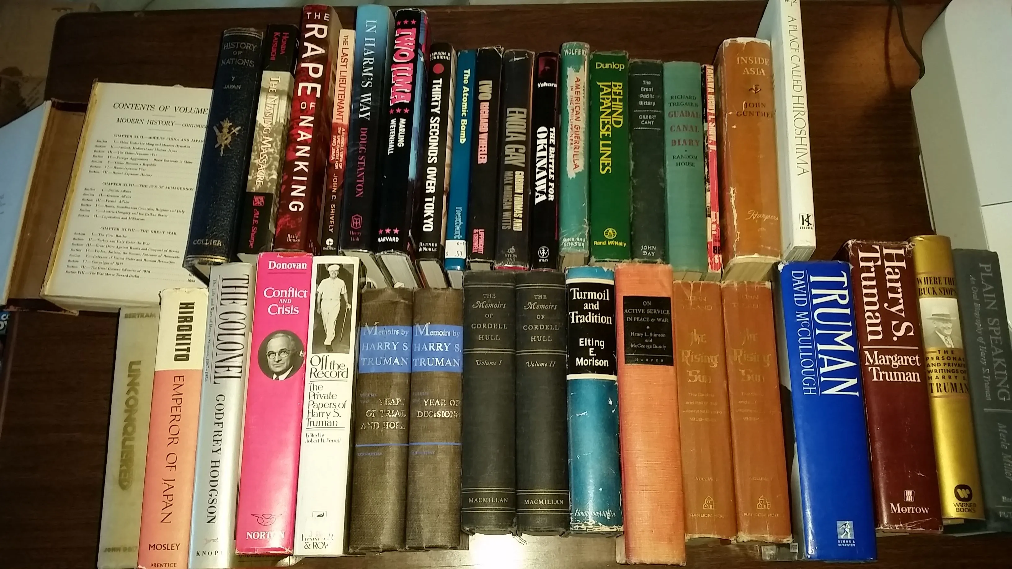 Here is a pic of most the books that are relevant to the topic at hand. Have you read, "The Rape of Nanking", certainly tells much of the character of the enemy we faced. Seems I forgot to include my stuff about Burma, where the Japanese tortured and maimed teenager's genitals and such, until the young teenage died, I am talking 13 year old boys and girls. Pretty gruesome enemy we faced.
