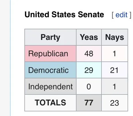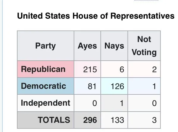 The votes in the Senate and House was as follows: